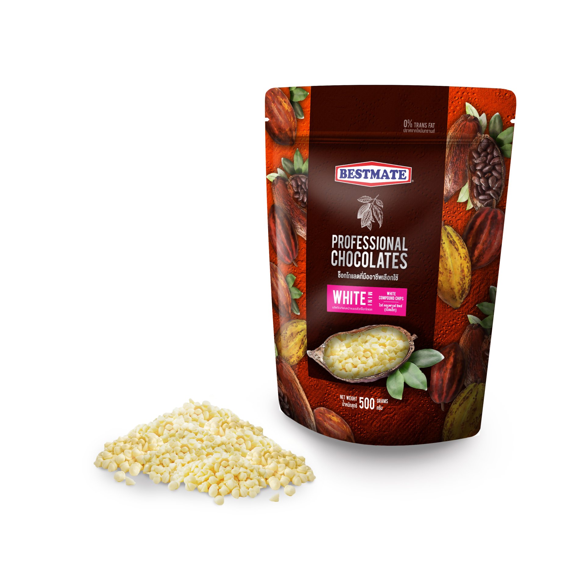 นอกจากนี้ เบสท์เมท ไวท์ คอมพาวด์ ชิพส์ (เม็ดเล็ก) ยังมีรสชาติที่ดี ทำจากวัตถุดิบ คุณภาพดี ปราศจากไขมันทรานส์ (0 g Trans fat) ทำให้ผู้รับทานได้รสชาติของช็อกโกแลตอย่างมาก